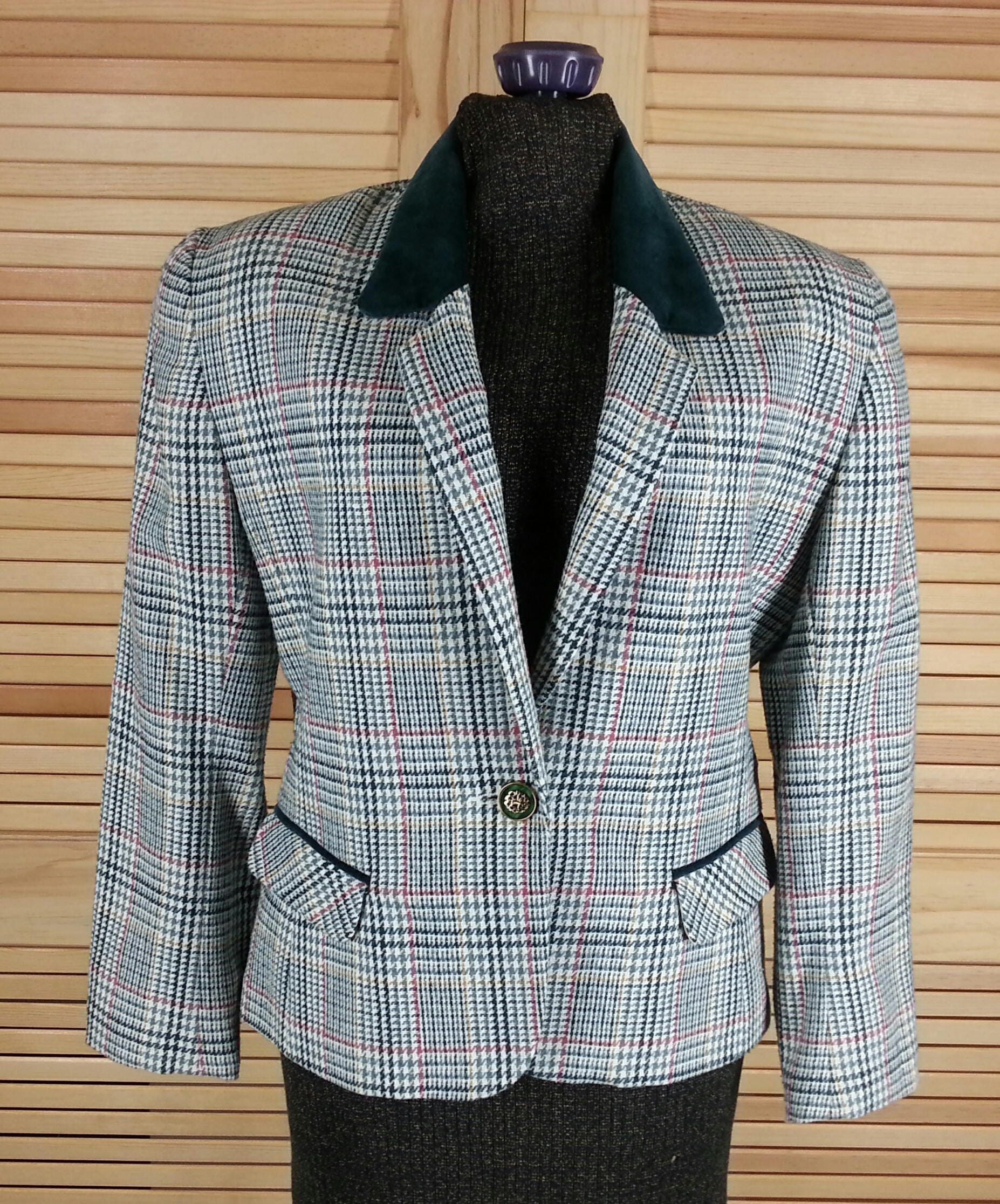 Vintage 80s 90s Green Plaid Blazer Velvet Collar Lucia Size 10 Etsy Canada